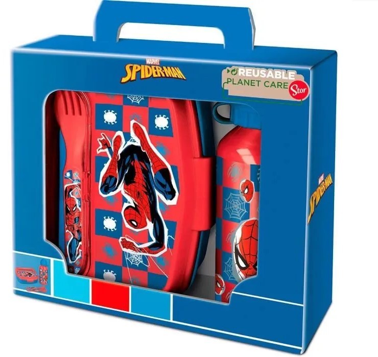 Ensemble de repas - STOR - Spider-man - Bouteille aluminium 400 ml - Ustensiles inclus - Sans BPA