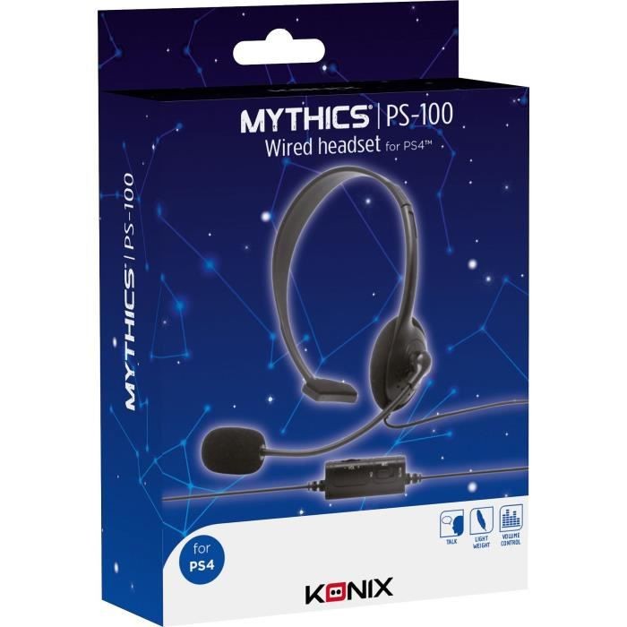 Casque Konix Micro Monaural jack 3.5mm PS-100 pour PS4 - Contrôle volume par fil, Filaire, Perche télescopique