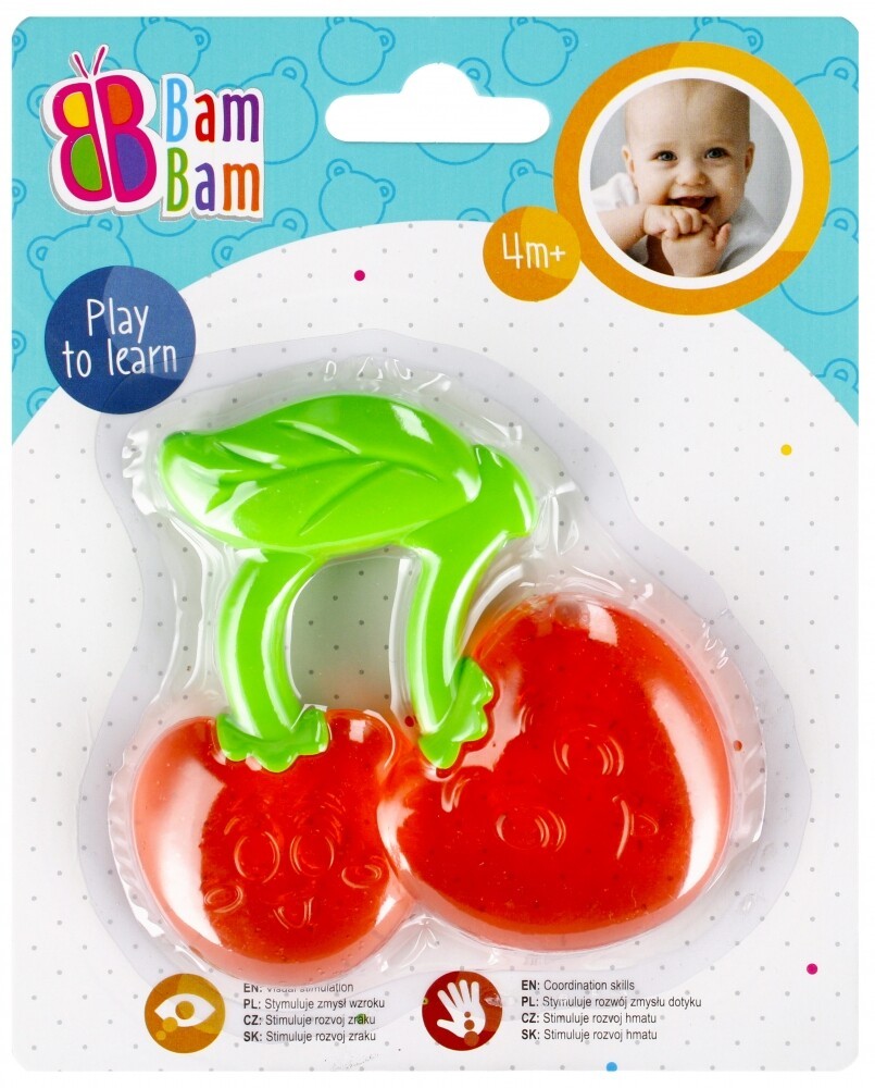 Anneau de dentition BAM BAM cerise taille 10 cm environ, à partir de 4 mois