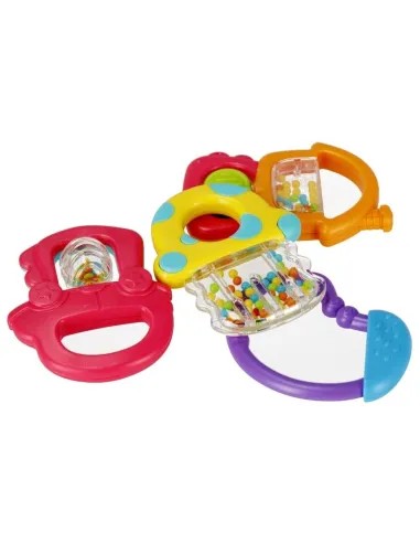 Hochet 4en1 bam bam destiné aux bébés à partir de 4 mois. aux couleurs subtiles et vives, aux textures de matières variées et aux formes variées, il comporte des éléments interactifs encourageant le tout-petit à jouer et stimulant en même temps le développement de ses sens de la vue, de l'ouïe et de la motricité. Grâce au clip, il est facile de l'accrocher à une poussette ou au lit de bébé. dimensions/poids/piles : dimensions du produit (longueur x hauteur x profondeur)[cm] : 14x16x3, dimensions de l'emballage (longueur x hauteur x profondeur)[cm] : 15x21x3, poids du produit sans emballage [kg] : 0,08 kg, poids du produit en le colis [kg] : 0,11 kg, ne nécessite pas de piles. jouet emballé sous blister.