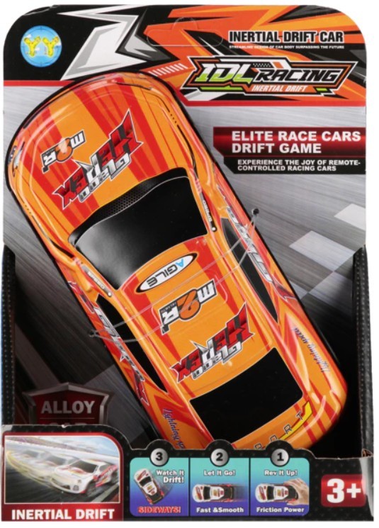 - Description : voiture de course "drift" avec fonction pull-back (se déplace seule après avoir été poussée), roues en caoutchouc, livrée en blister, trois couleurs (rouge, orange, bleu).