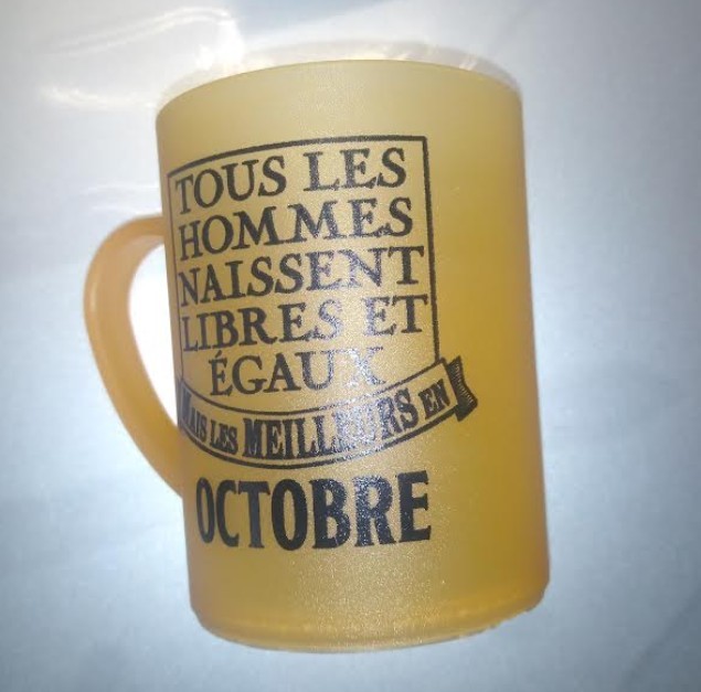 Mug en mélamine "Tous les hommes naissent libres et égaux , mais les meilleurs en Octobre" taille 350 ml environ
