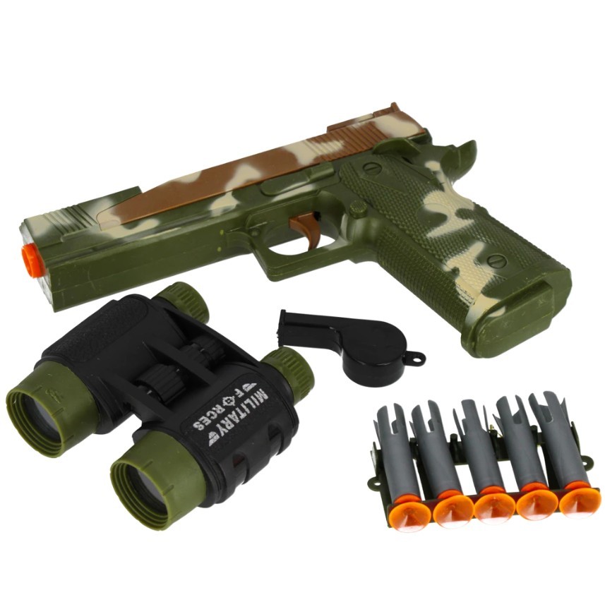 Le coffret Mega Creative Army est le jouet idéal pour les petits aventuriers et amateurs de jeux d'action. Les enfants peuvent recréer des scènes de bataille, développer leur imagination et leur créativité, et améliorer leur motricité fine grâce au jeu de rôle. Fabriqué à partir de matériaux sûrs, notamment du plastique durable et non toxique, il est parfaitement adapté aux enfants. Le développement de l'imagination et de la dextérité favorise le jeu créatif, la planification stratégique et la coordination œil-main. Idéal pour jouer seul ou à plusieurs, à la maison. Ce coffret est une excellente idée cadeau pour les enfants dès 3 ans, leur offrant des heures de jeu créatif, sûr et actif. Fabriqué en plastique et en caoutchouc. Contenu du coffret : 1 pistolet, 5 fléchettes, 1 paire de jumelles, 1 sifflet, 1 étiquette d'identification. Dimensions / Poids / Piles : Dimensions du produit (L x H x P) {cm} - Pistolet 20 x 13 x 2. Fonctionne sans piles. Convient aux enfants de 3 ans et plus.