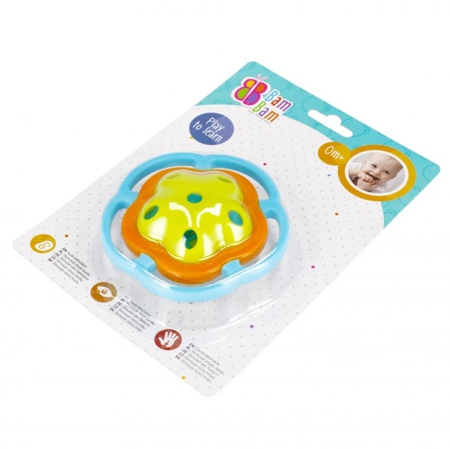 La balle hochet miroir Bam Bam est un jouet idéal pour les bébés. Cette balle hochet colorée avec miroir est parfaite pour les tout-petits. Elle favorise le développement de leurs sens et de leur motricité fine. Le hochet attire l'attention de bébé, tandis que le miroir lui permet d'explorer son reflet, contribuant ainsi au développement de la conscience de soi et de la perception visuelle. Fabriquée à partir de matériaux sûrs et légers, la balle est facile à saisir et à manipuler pour les petites mains. Elle est idéale comme jouet d'éveil pour les bébés dès 3 mois. Un cadeau parfait pour un bébé, alliant jeu et éveil sensoriel. Caractéristiques du produit : Favorise le développement des sens et de la coordination œil-main, facile à saisir pour les bébés, légère et fabriquée à partir de matériaux sûrs. Dimensions / Piles : Dimensions du produit (L x H x P) [cm] : 11 x 11 x 11. Fonctionne sans piles. Hochet destiné aux enfants de 3 mois et plus.