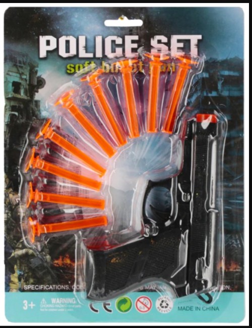 Ce kit de police avec pistolet à fléchettes en caoutchouc est un excellent jouet pour les petits aventuriers et amateurs de jeux d'action. Grâce aux fléchettes en caoutchouc souple et sans danger, les enfants peuvent s'amuser à jouer la comédie, à développer leur précision et leurs réflexes en toute sécurité, et c'est un accessoire idéal pour un costume de carnaval. Caractéristiques du produit : Fléchettes en caoutchouc sans danger, les embouts souples ne blessent pas et ne nuisent pas à l'environnement. Développe la dextérité et les réflexes, enseigne la précision, la concentration et la rapidité de réaction. Design réaliste : le pistolet et les accessoires ressemblent à de véritables équipements de police, idéal pour les jeux de rôle. Amusant pour les enfants, parfait pour jouer seul ou avec un groupe d'amis. Fabriqué en plastique et en caoutchouc. Contenu du kit : Pistolet, 9 fléchettes en caoutchouc. Dimensions / Piles : Dimensions du produit (L x H x P) : 15 x 11 x 3 cm. Fonctionne sans piles. Convient aux enfants de 3 ans et plus. Conditionné sous blister.